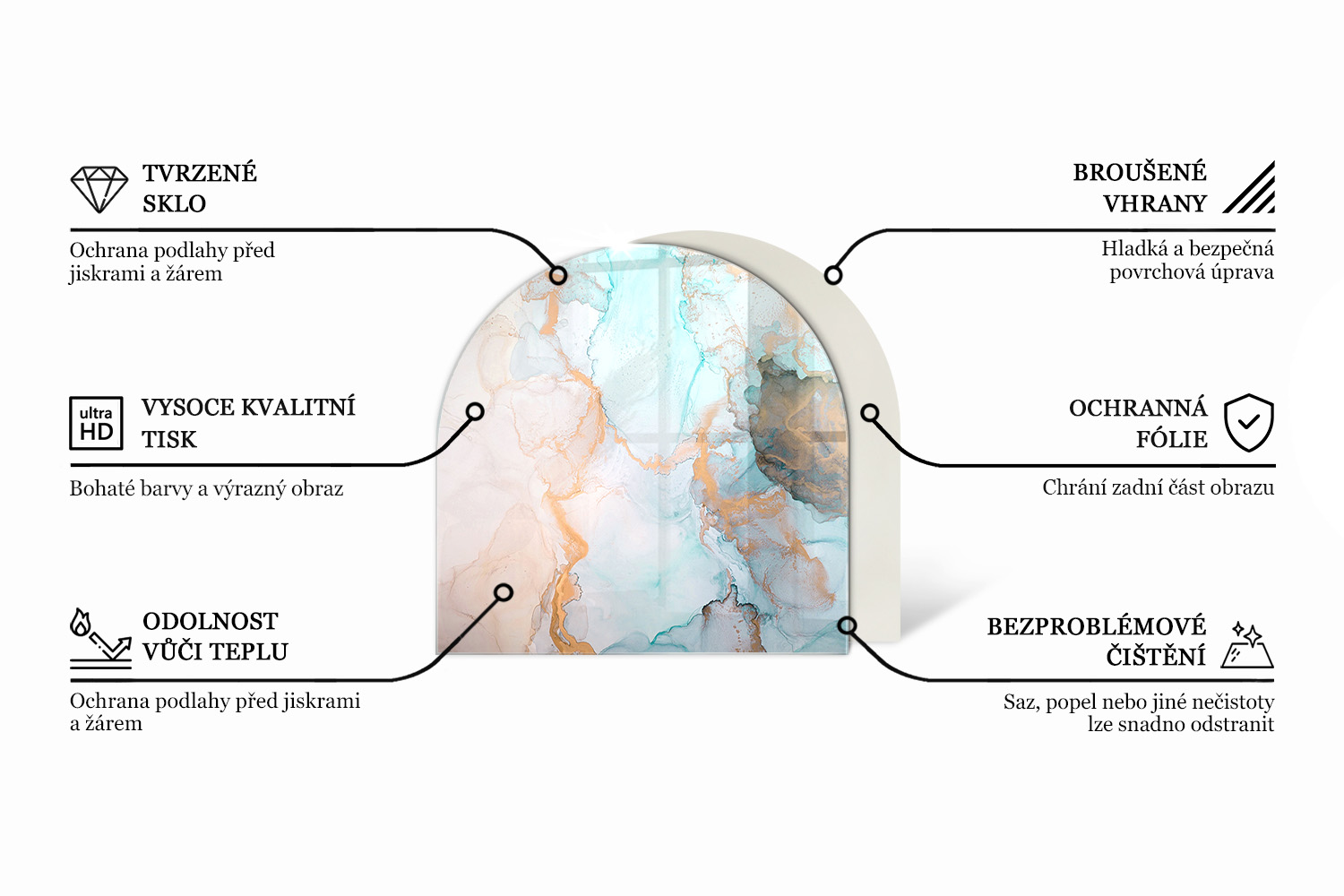 Toto inovativní ochranné sklo před kamna s potiskem představuje dokonalou alternativou ke obyčejným plechům. Motiv Barva Šedozelená dodává místnosti nový styl a vytváří elegantní krbový panel. Díky hladkému povrchu je tato podložka před krb velmi jednoduchá na údržbu – nečistoty a prach se na skle nelepí.