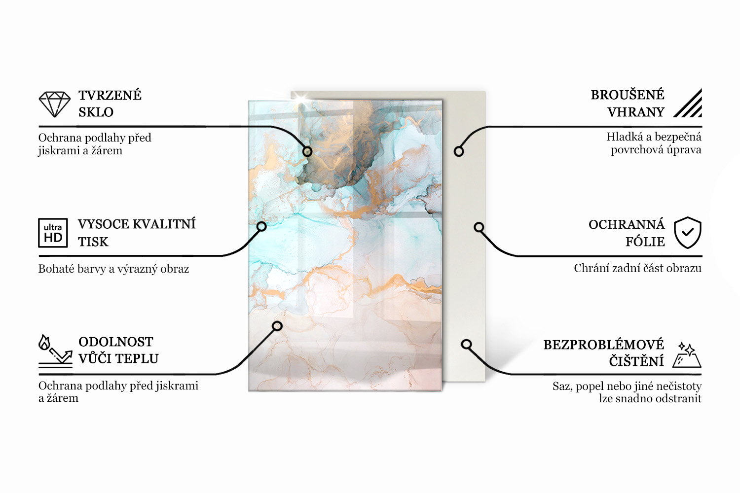 Obdélníkový tvar skvěle pasuje s mnoha aranžmá, a ideálně se osvědčuje jako ochranné sklo před krbová kamna nebo tradiční krb. Díky dekorativnímu potisku toto žáruvzdorné sklo proměňuje obyčejnou ochranu na stylový krbový panel, který vdechuje interiéru charakter.